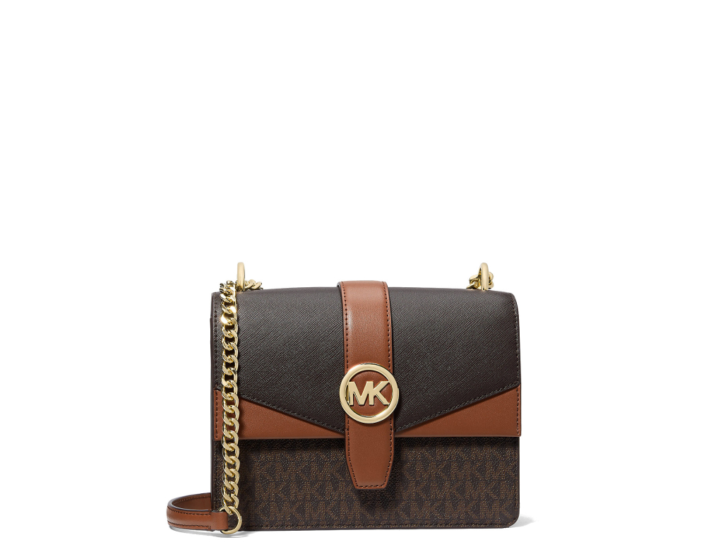 Michael Kors Greenwich Small Color-Block Signature Logo Crossbody Bag Brown