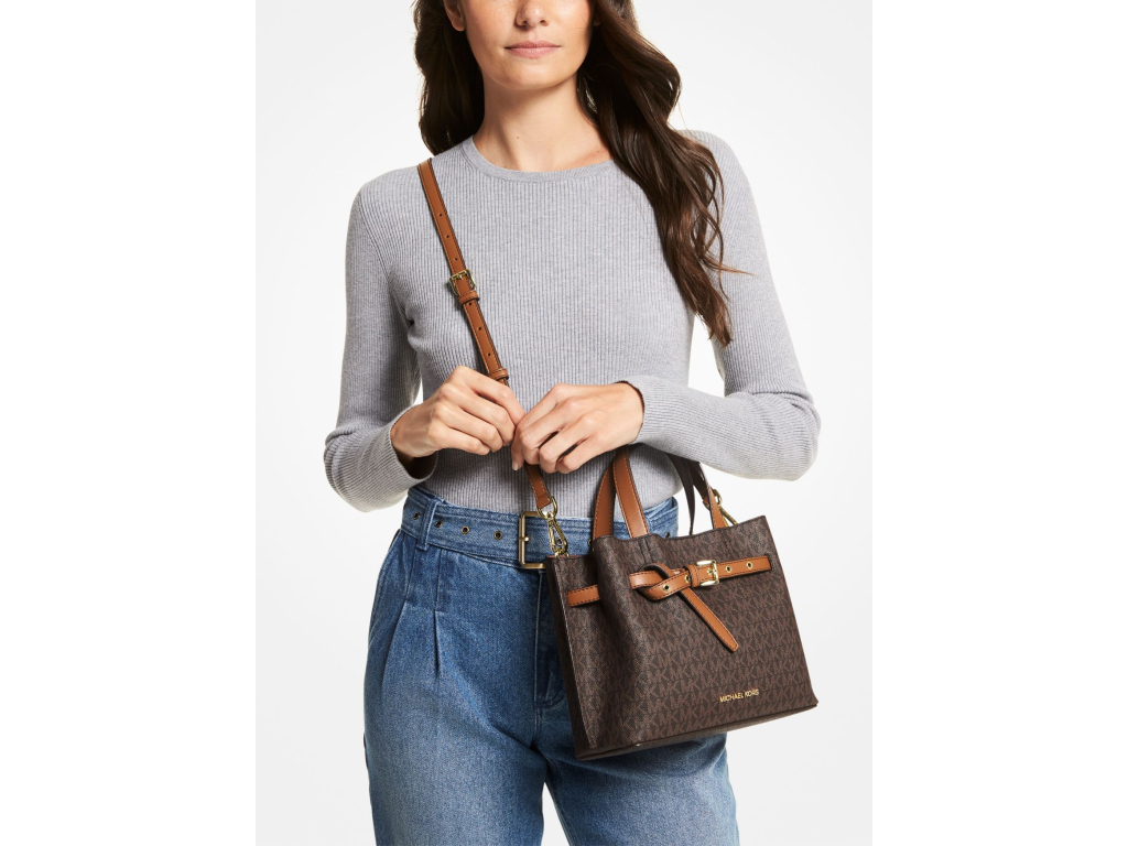 Borsa a mano piccola con logo Michael Kors Emilia marrone