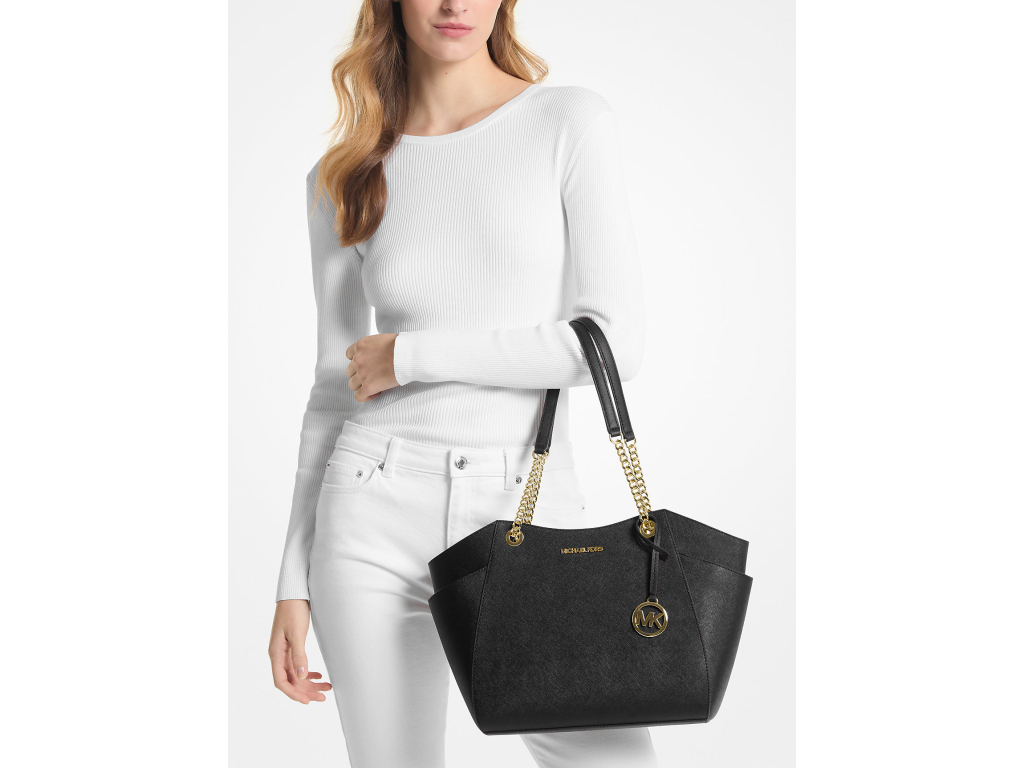 Borsa a spalla Michael Kors Jet Set Large in pelle Saffiano, nera