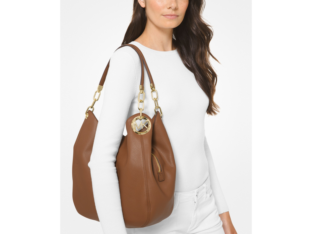 Michael Kors Lillie Chain Leather Hobo Luggae Gold