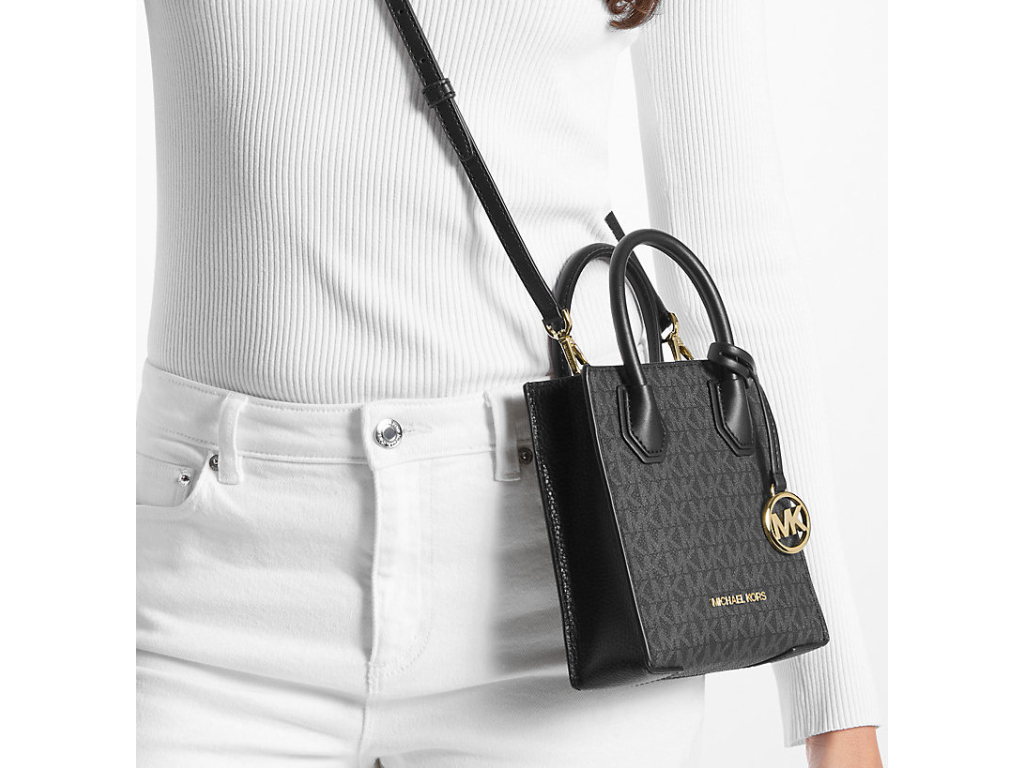Borsa a tracolla Michael Kors Mercer Extra-Small in pelle con logo, nera