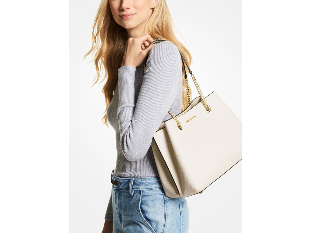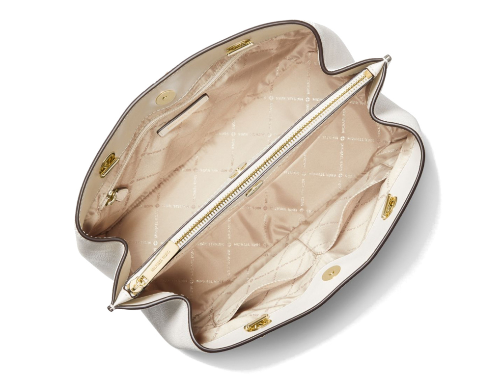 Borsa a spalla grande Michael Kors Teagan in pelle martellata color crema chiaro