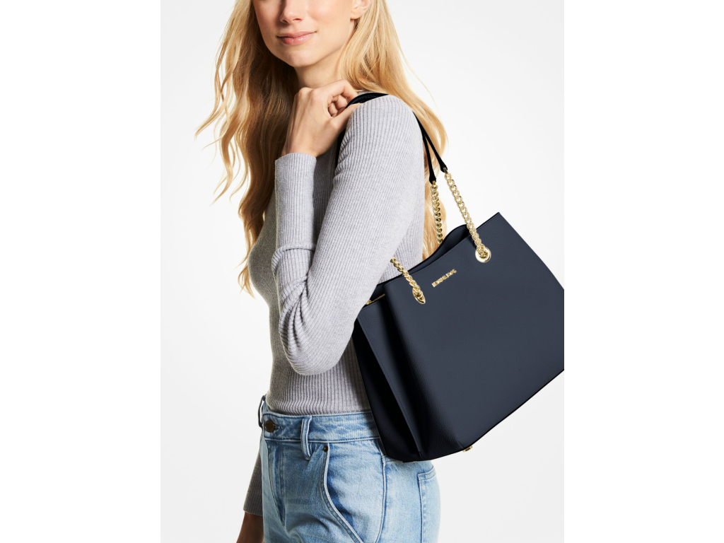 Michael Kors Teagan Large Pebbled Leather Shoulder Bag Navy
