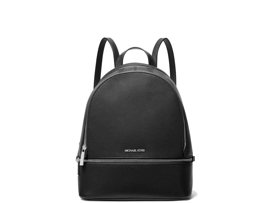 Michael Kors Batoh Rhea Medium Pebbled Leather Backpack Black Silver